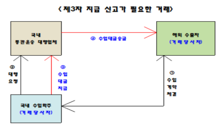 ㅇ 최근, 서울세관에서는 국내 수입화주(거주자)가 해외 수출자(비거주자)와 거래를 하고 그 대금을 거래 당사자가 아닌 대행업체(통관 운송 대행