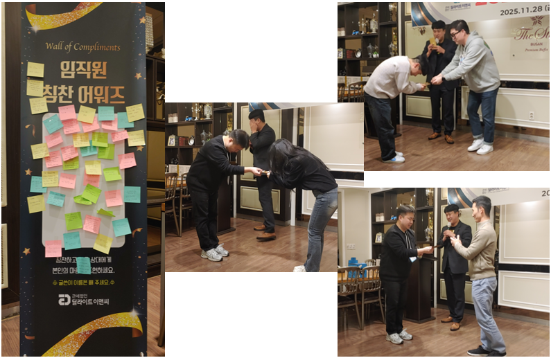 이 날 행사장에서는 평소 칭찬하고 싶은 임직원을 모두의 앞에서 칭찬하는 이벤트를 진행했습니다.