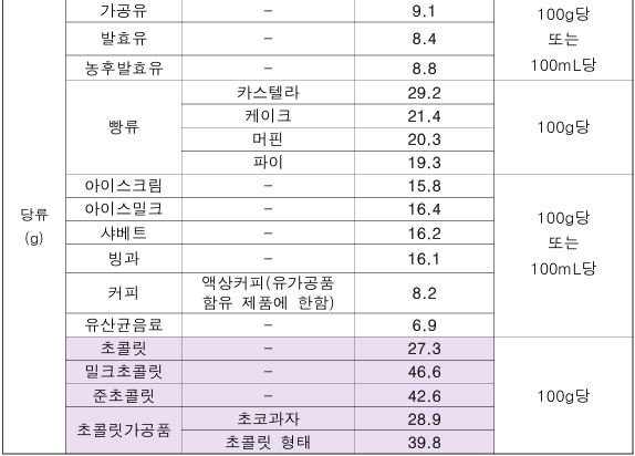 「나트륨 · 당류 저감 표시기준」일부개정고시 관련 적용 확대 품목의 나트륨 · 당류 평균값 (‘25.11. 기준)